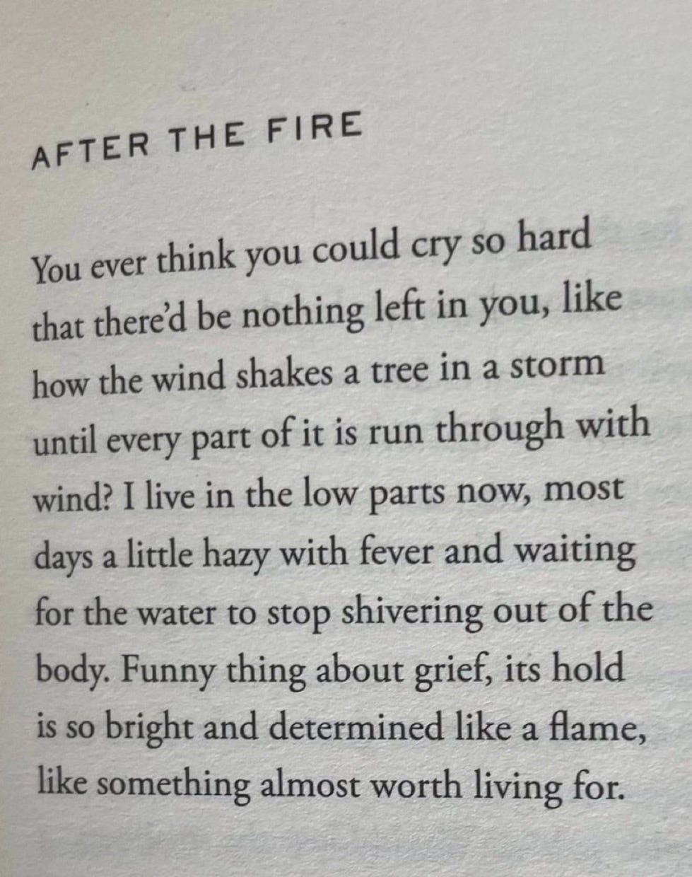 When I laugh, I can hear that there’s no ink or injury in the sound. How did I manage to get rid of that? I used to laugh like everything hurt because it did. I used to flicker against the wall like a bad matchstick. Slow blinking, never enduring. What does it sound like instead? Creaky floorboards. A little awkward. Adrift, but not fully gone. Like if everything was sad and beautiful at the same time.